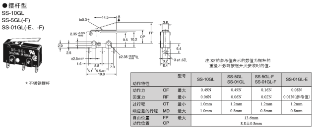 所以,对于微动开关品牌的选择还是不能马虎的,鼎悦小编为您推荐世界知名品牌欧姆龙微动开关:具有超高安全、超长寿命、超小尺寸的微动开关SS系列。 具体技术参数: