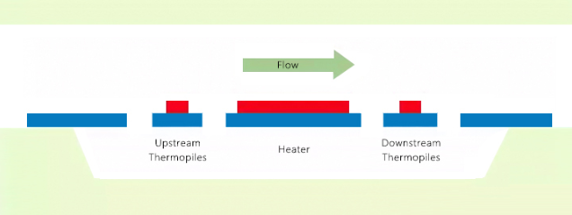 当气体(介质)不流动时,对称的两个温度传感器就会检测到相同的温度。当气体流动时,比如从左向右流动,此时传感器的温度读数就是右边高于左边。由于温差与流速成正比,我们通过测量两个温度传感器的温差来测量差压量值。