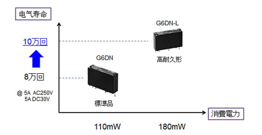 与传统的工业用继电器不同,工业自动化行业对于电子继电器有着更高的要求,为满足这一市场要求,日前,欧姆龙特别推出了G6DN系列继电器,可用于工业自动化设备内部PCB板上,实现高电流切换5A( AC250V、DC30V )及交叉双触点实现高可靠性。该产品包括标准型和-L型两种型号,其中,G6DN-L相较于G6DN标准型拥有更高电气寿命。