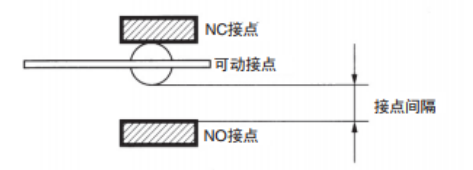 接点间隔是微动开关的设计目标,欧姆龙根据市场要求,将接点间隔定为0.25mm、0.5mm、1.0mm、1.8mm:4种,一般接点间隔的标准为0.5mm。