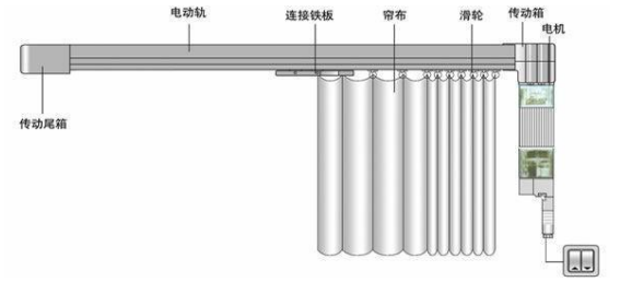 电动窗帘和我们的普通窗帘之间的差距,其实就是一个智能化的电机。由电机来驱动窗帘在轨道上的运动。