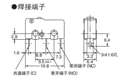 端子规格:焊接端子