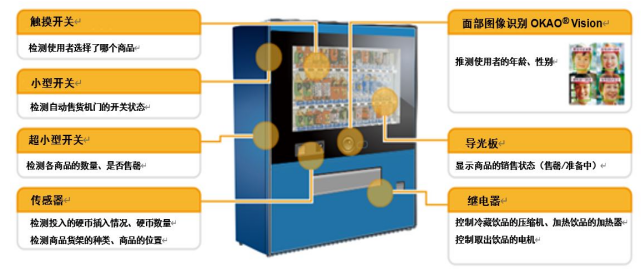 我们的生活离不开各式各样的产品和服务,也因而变得丰富多彩。在街头巷尾随处可见、男女老少皆可使用的自动售货机就是其中的一个典型代表。自动售货机操作便捷,只要付款后就能立即得到温度适宜的饮品等,而为这一系列流程提供支持的有轻触开关、传感器、继电器等多种电子零部件。由于它们都嵌入在产品内部,因而无法进入我们的视线,但是它们都为自动售货机的运转发挥着各自的功能。