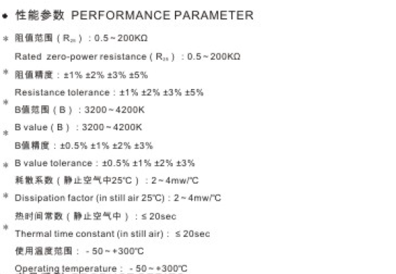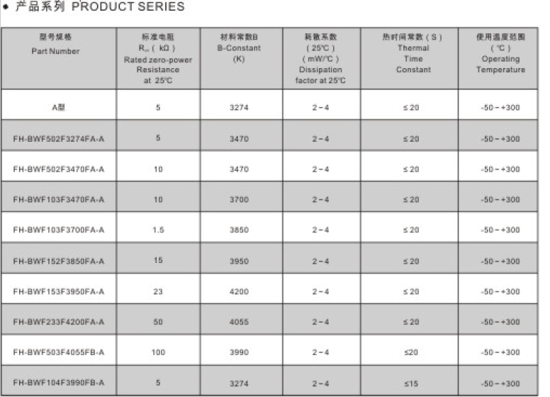 高精度玻封NTC热敏电阻 BWF153J3950FA-A