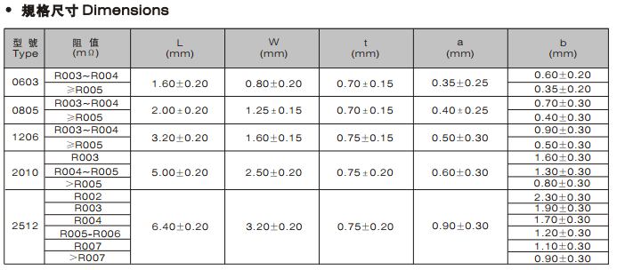 合金超低阻值片式固定电阻器,●最高功率可达2W ●最低TCR为±50 ppm/℃ ●适于作电流探测用电阻器如电源电路、发动机用电路等 ●机械强度高、高频特性优越 ●符合ROHS指令要求
