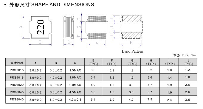 超薄PRS功率电感,频闭式结构,适合表面安装