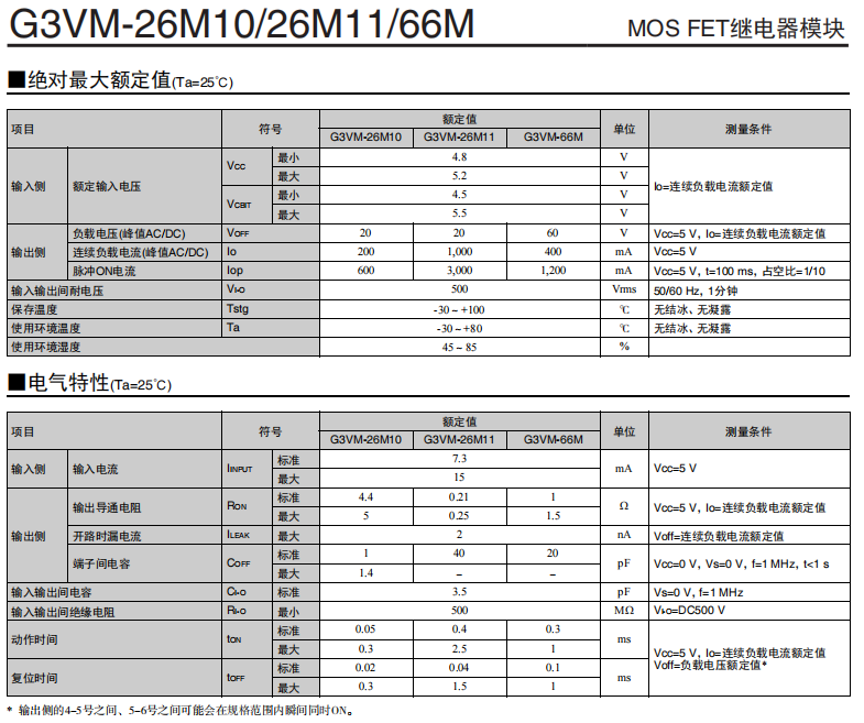 低漏电流MOS FET继电器模组G3VM