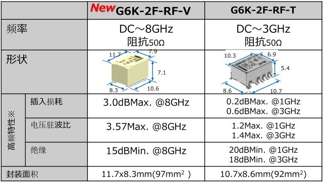 而欧姆龙新出的G6K-2F-RF-V 8Ghz将在特性及性能方面都有明显优势;
