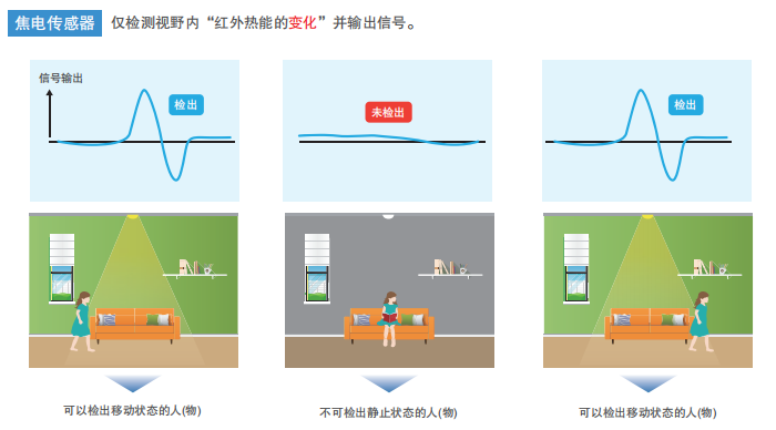 焦电传感器和MEMS非接触温度传感器都是接收红外线微弱的热能并输出信号的传感器。焦电传感器无法检测静止状态的人(物),而MEMS非接触温度传感器可以检测静止状态的人(物)。