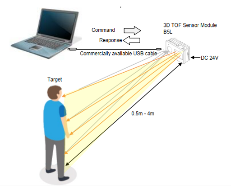 TOF是飞行时间(Time of Flight)技术的缩写,即传感器将调制过的近红外光以光脉冲的形式不断发送出去,遇到物体后会产生反射,当传感器接收到从物体返回的光脉冲时,通过计算光线往返的飞行时间或相位差得到待测物体的3D深度信息或目标物距离。欧姆龙新推出的B5L系列传感器模组是一款高精度3D TOF测距传感器,除了可用于护理监控,也可应用于服务类机器人、仓储物流、自动门或电梯等产品。