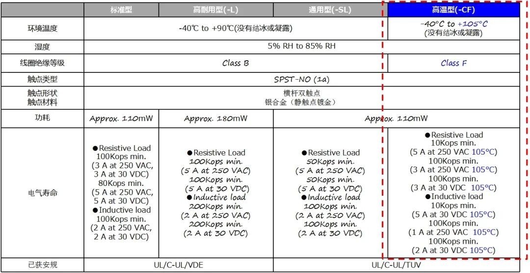 这款继电器专为高温应用而设计,能够在高达105℃的环境中稳定运行。其具备5mm宽度(20×5.08×12.5mm)的紧凑设计,以及5A大分断性能。此外,这款继电器凭借仅110mW的线圈功耗,实现了高效节能。