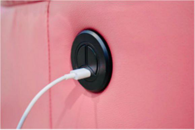 而这款小沙发旁边设置了开关调节角度和USB充电接口,让使用者在最方便的位置就能操控沙发的角度。