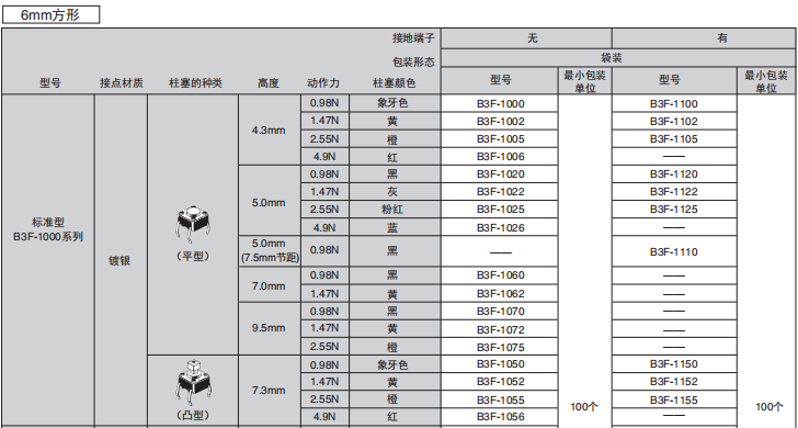 标准型B3F-4000系列、长寿型B3F-5000系列、高信赖型B3F-5001系列