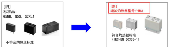 而我们的欧姆龙继电器G5NB/G5Q/G2RL系列为此推出灼热丝带-HA型号,两者的区别就在于外壳和基座的塑料材质是否为阻燃材料。
