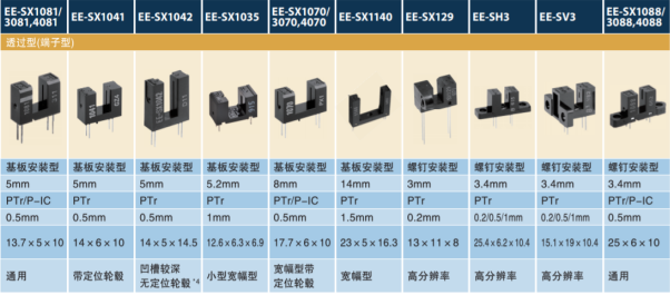 欧姆龙型号EE-SX1088,3088对射式光电开关可应用于:复印机、传真机、开关扫描仪、打印机、门禁机、出卡机、车辆检测器、跑步机、机器控制开关、投币机、自动感应器等上面。