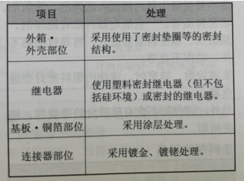 请不要在周围存在硅气体(如:二氧化硫、硫化氢)、有机气体的环境中使用,如果在硫化气体或有机气体环境中长时间放置或使用继电器,接点表面有时会腐蚀,发生接触不稳定及接触障碍,端子的焊接性下降,如果在硅气体环境中长时间放置或使用继电器,接点表面会生成硅膜,导致接触不良,如果进行下表内的处理,恶性气体的影响会降低: