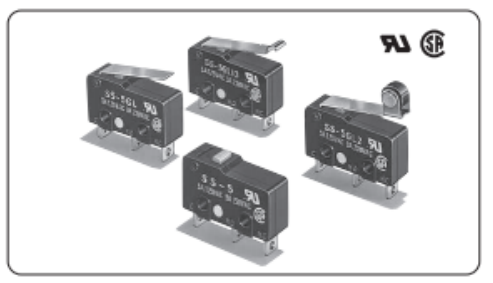那么在智能售货机中的线束上会有用到欧姆龙的微动开关,其中一个作用是起到开关门的控制,常用的欧姆龙微动开关型号是SS-5GL2/SS-5GL,如下图所示: