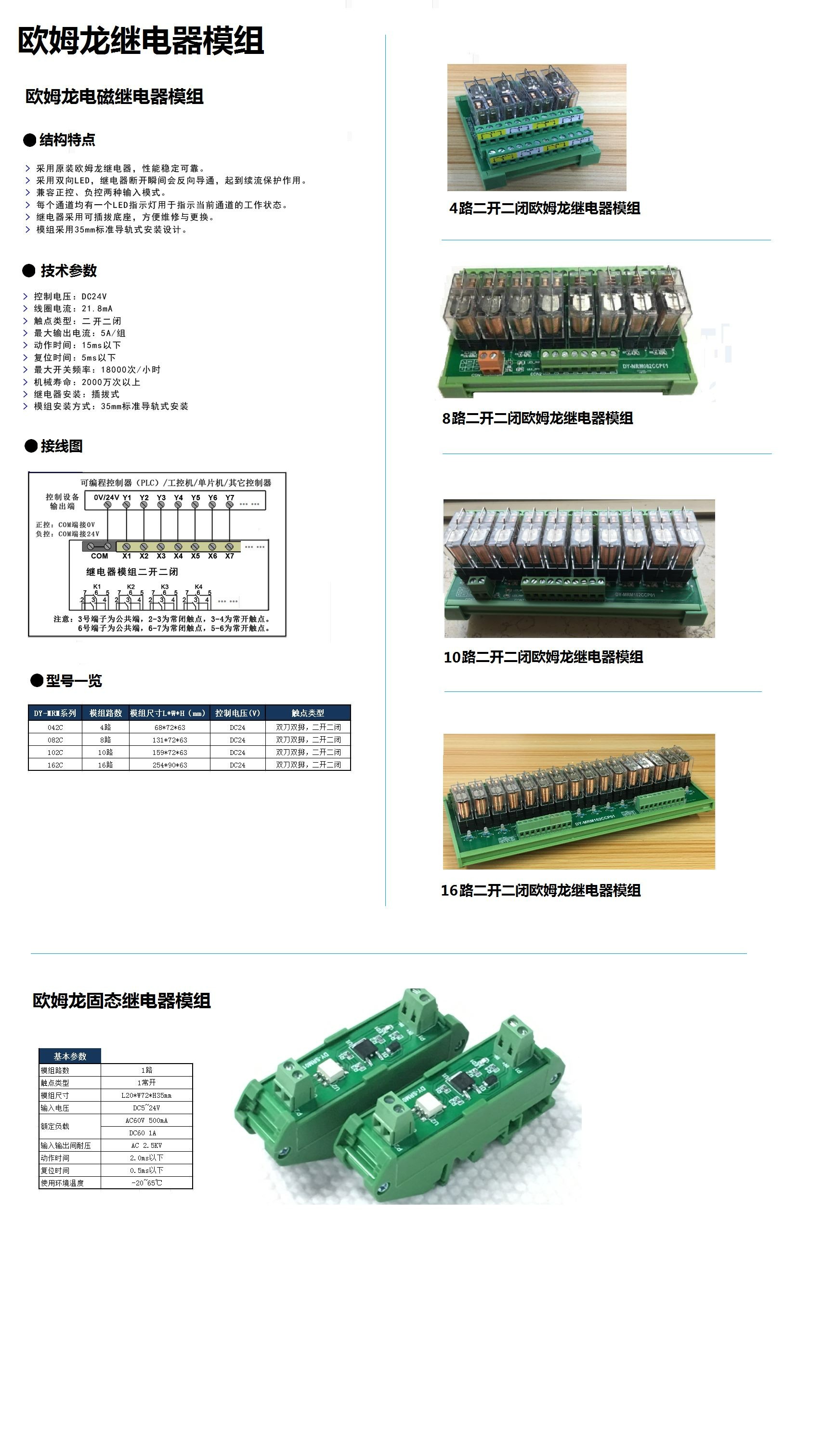 采用原装欧姆龙继电器,性能稳定可靠。 采用双向LED,继电器断开瞬间会反向导通,起到续流保护作用。 兼容正控、负控两种输入模式。 每个通道均有一个LED指示灯用于指示当前通道的工作状态。 继电器采用可插拔底座,方便维修与更换。 模组采用35mm标准导轨式安装设计。