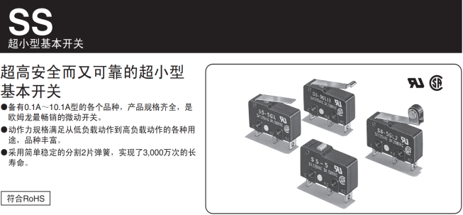 在体外诊断仪器的研发生产中,必定离不开一种重要组成零件,那就是开关。开关可在需频繁换接电路的设备中进行自动控制及安全保护,广泛应用在各式仪器仪表设备中,开关虽小,起的作用却是不可替代的。像欧姆龙的SS超小型基本开关系列,不仅规格齐全,从0.1A~10.1A均有配备,而且机械寿命长,最高可达3000万次,深受诊断仪器生产厂商的喜爱。广州鼎悦电子科技有限公司专业代理欧姆龙微动开关SS-5GL,传感器等;欢迎电话咨询广州鼎悦电子科技有限公司;相信我们可以带给您不一样的选择;如图: