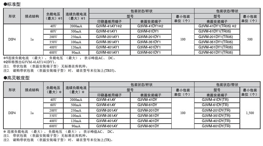 G3VM-41AY1/41DY1 MOS FET欧姆龙继电器
