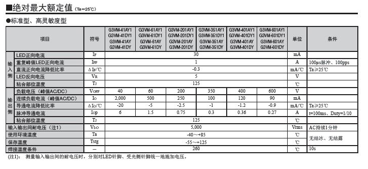 G3VM-61VY3/61VY2 MOS FET欧姆龙继电器