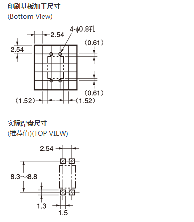 * 连续负载电流 (最大)、 负载电压 (最大) : 表示峰值AC、 DC。 注1. 带状包装(表面安装端子型) 无标准在库机种。 注2. 带状包装(表面安装端子型) 的订货请在型号末尾加上(TR) 或(TR05)。 |