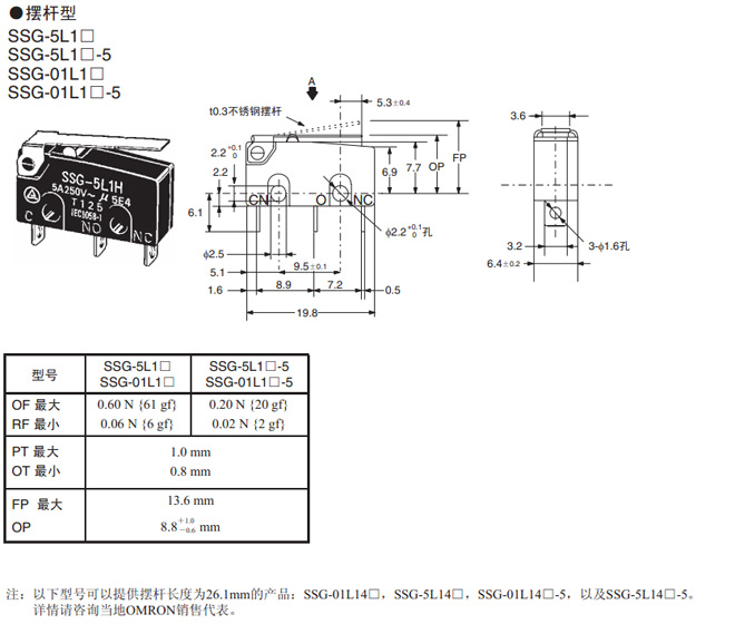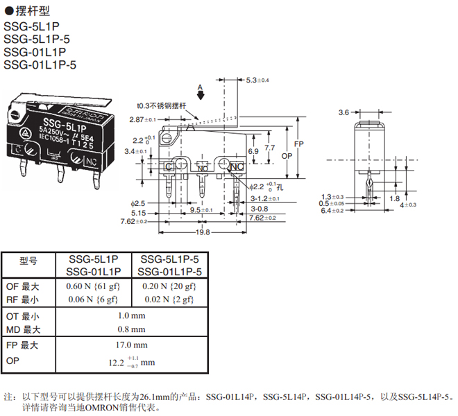 | 注:SPST-NO和SPES-NC型号的详细情况,请咨询当地OMRON销售代表 |