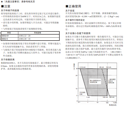 | 接触电阻 | OF 1.50 N | SSG-5 models: 30mΩ最大 |