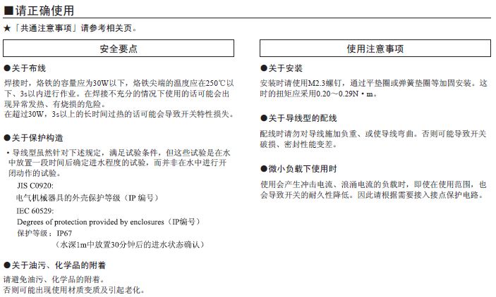 针状按钮型有自由位置和动作限度位置、摆杆为动作限度位置时的值。 接点为开路和闭路1ms以内。 |