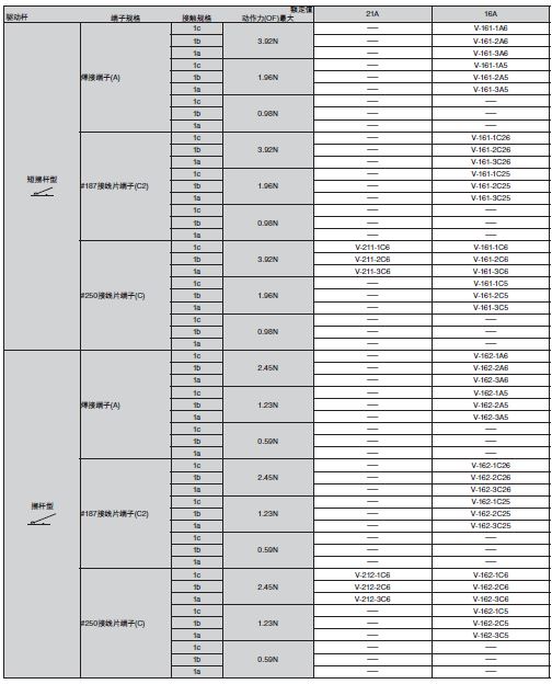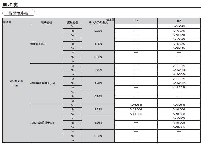 V小型基本开关小型、高容量开关