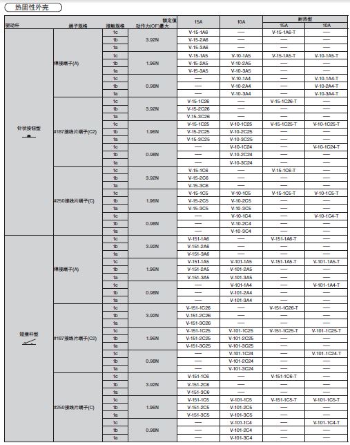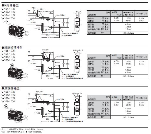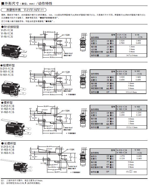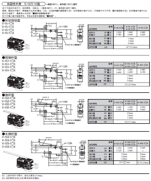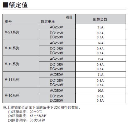 V-15欧姆龙微动开关