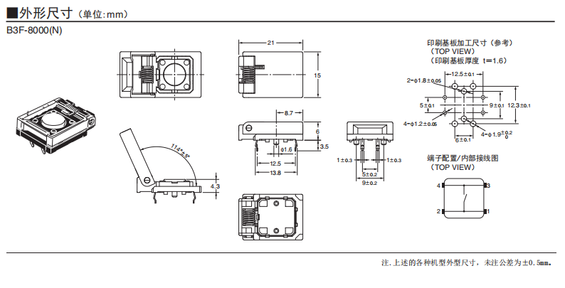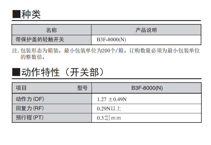B3F-8000(N) 轻触式开关(带保护盖)