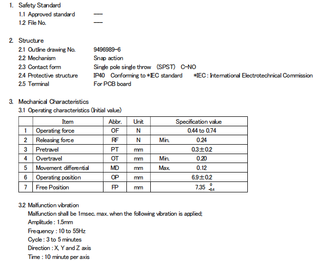 印刷基板用端子还备有独立端子、直角端子。佰利乐 鼠标开关的型号有: