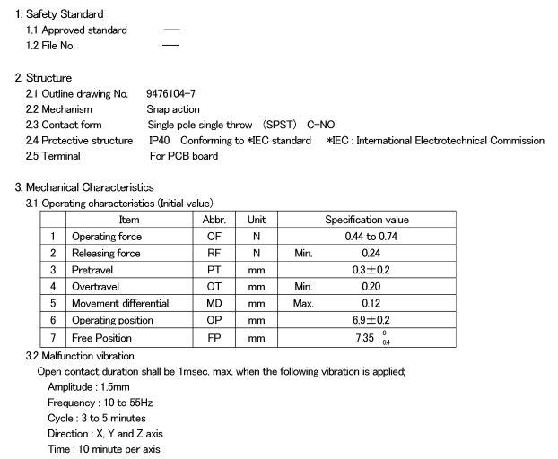 印刷基板用端子还备有独立端子、直角端子。鼠标开关的型号有: