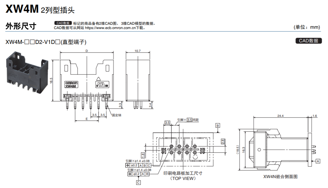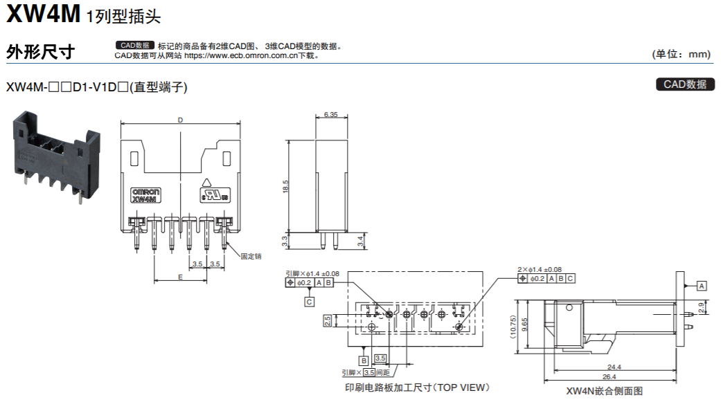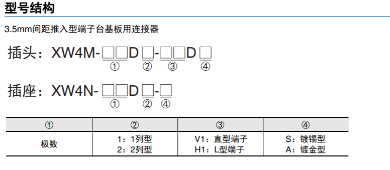 XW4M/XW4N 3.5mm间距基板用连接器