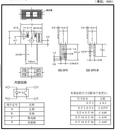 EE-SF5/EE-SF5-B微型光电欧姆龙传感器