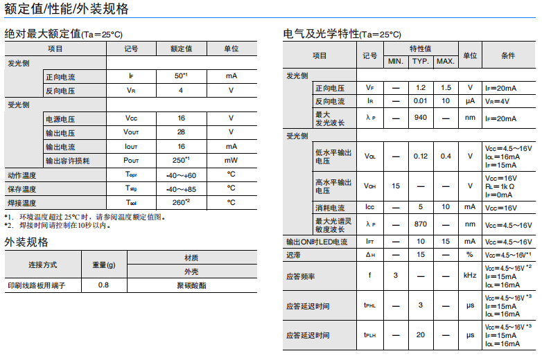 横向安装凹槽端子型(槽宽:2mm) 横向孔径 印刷线路板用端子 适用电源电压为 DC4.5~16V 光电IC输出(入光时ON) 可直接连接 C-MOS