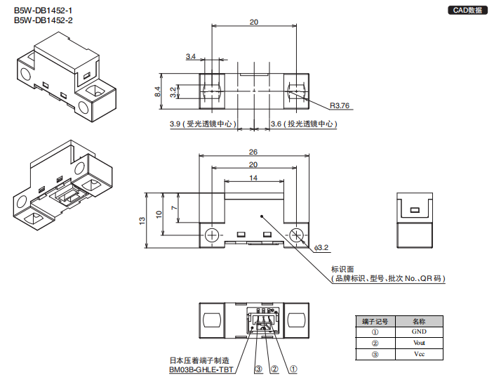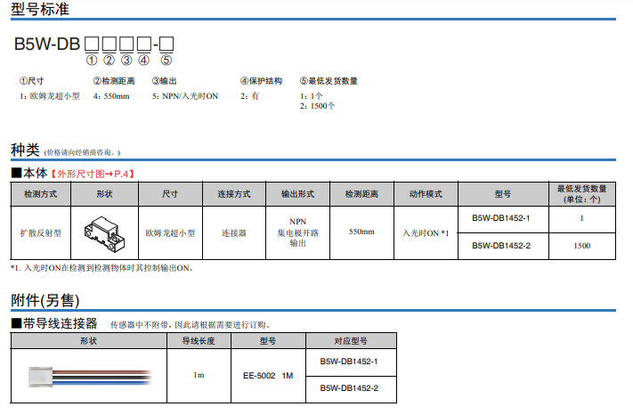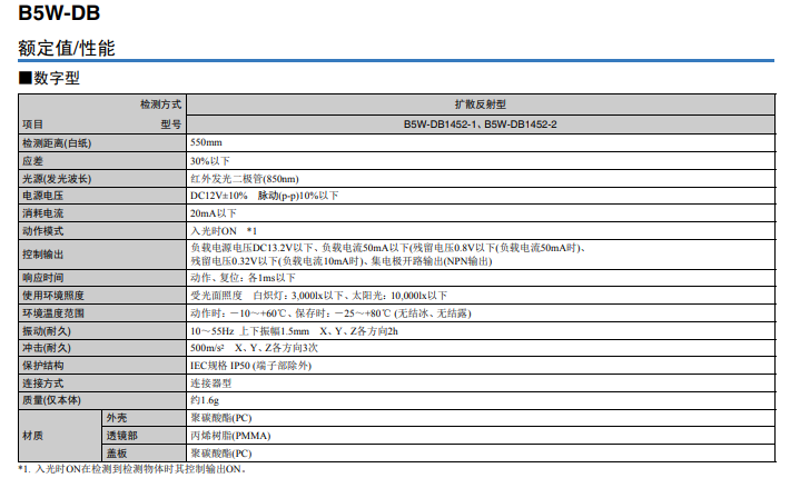 黑色、透明物体反射型传感器B5W-LB1112-1
