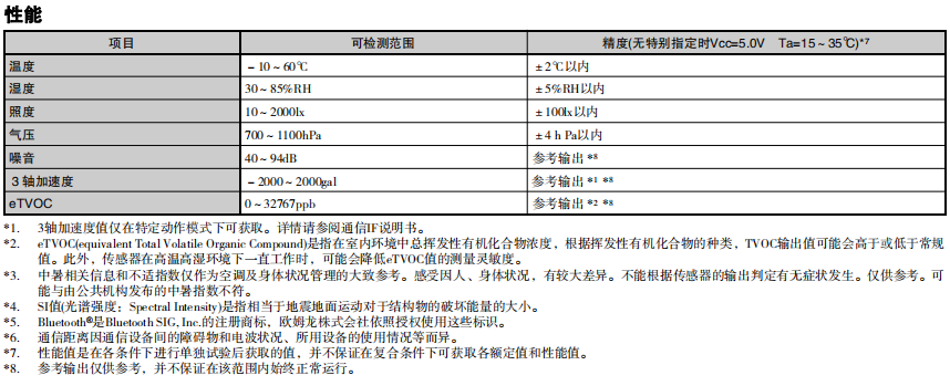 可通过USB或Bluetooth®通信连接到网络并发送测量数据 采用欧姆龙创新算法,可根据加速度振动实现高精度的地震判断 使用VOC传感器,可连续监测室内空气质量